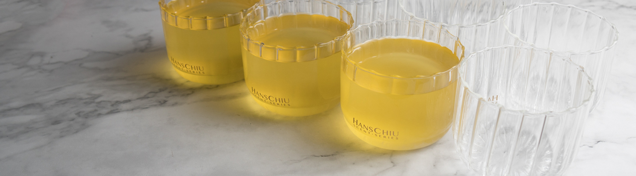 在 HANSCHIU,每一顆蠟燭都不是量產品,而是一件凝縮手工溫度的生活器物。選用頂級大豆蠟作為基底,搭配 100% 天然精油調配香氛,以植物本質的純粹回應日常的氣味需求。蠟液以恆溫注蠟的方式緩慢凝固,保留了香氣在低溫燃燒下最穩定、最柔和的擴散力。外層的燭杯則由職人以工藝方式打造——有些來自玻璃吹製的光影紋理,有些源自陶泥塑形的微妙觸感。每個杯形皆經過反覆調整比例,使燭光在燃燒時呈現最和諧的明暗律動。