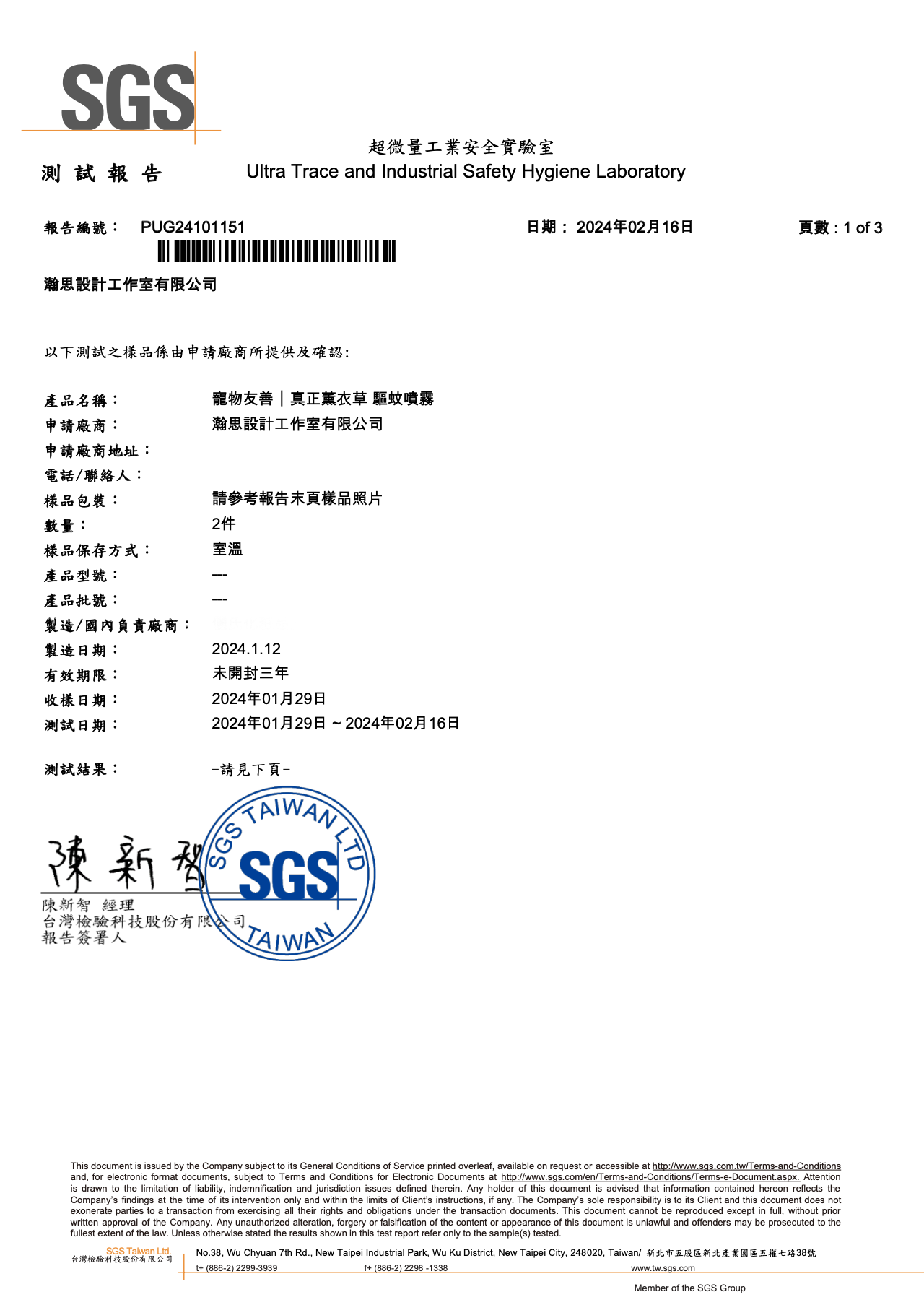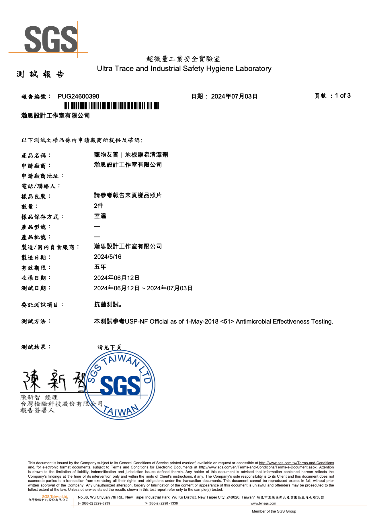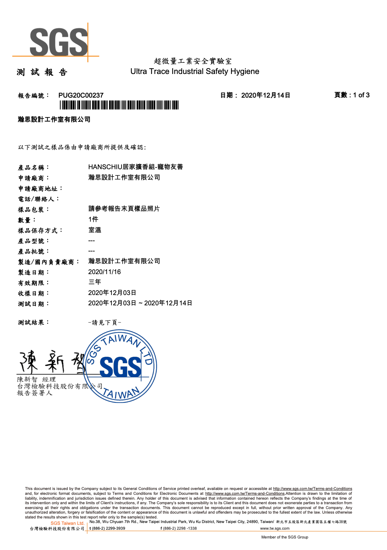 產品安全檢測報告書