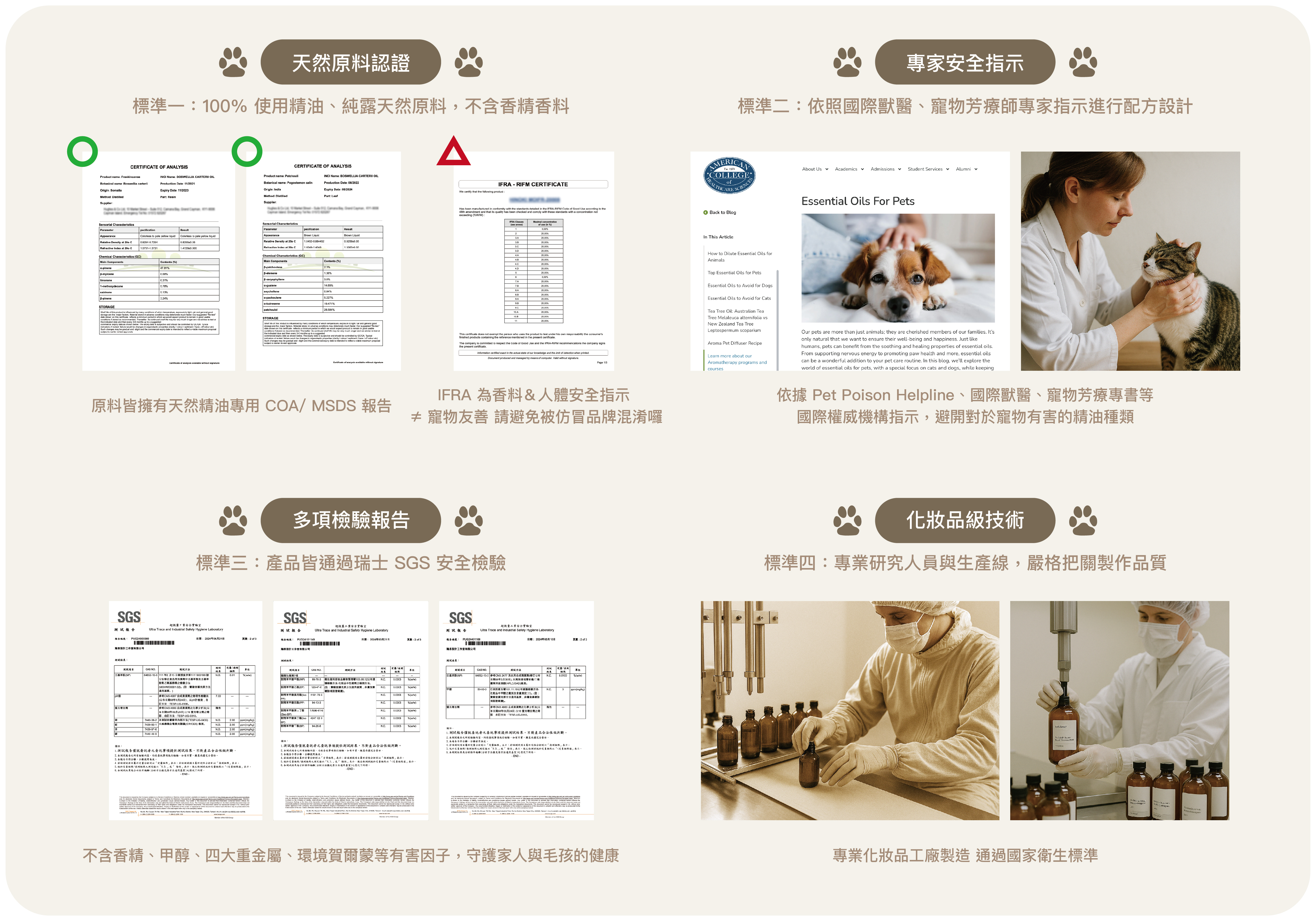 *小Tips:香精原料通過 IFRA 專業認證,僅針對人體驗證是可以安心使用的,但不代表適合毛孩的身體唷!